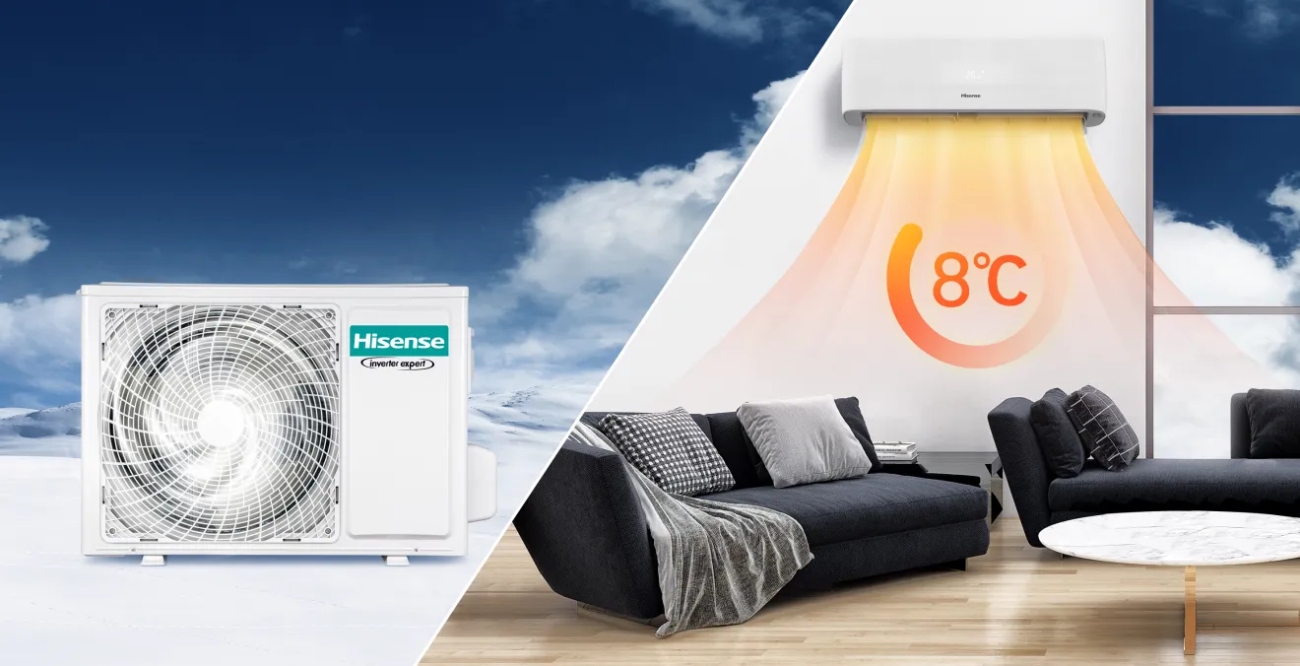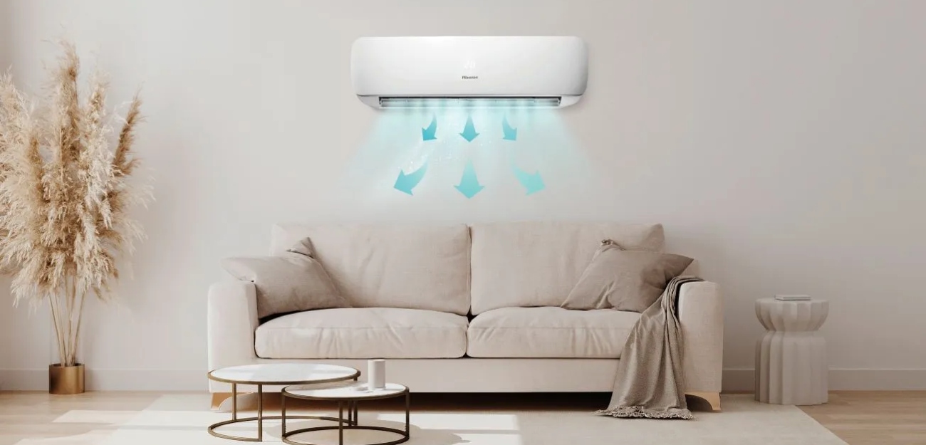 Das Hisense Wings Komfort Wandklimagerät ist ein modernes Gerät, das dank seiner Fähigkeit, sowohl zu kühlen als auch zu heizen, das ganze Jahr über Komfort bietet.