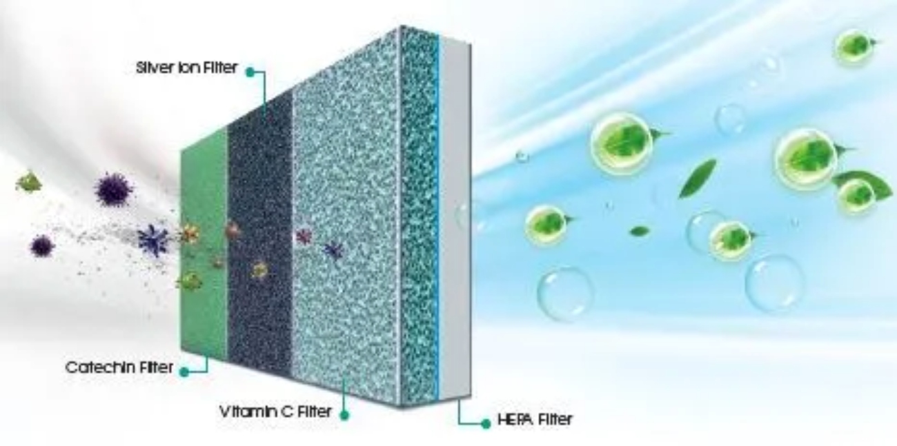 • 4-in-1-Filter: Vitamin C, Silberionen, Catechin, HEPA